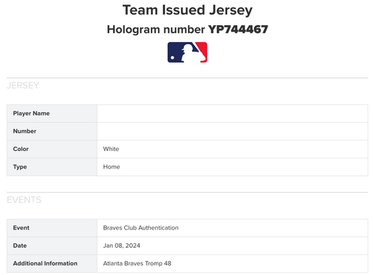 100% Authentic Chadwick Tromp 2024 Atlanta Braves Game Used Worn Jersey