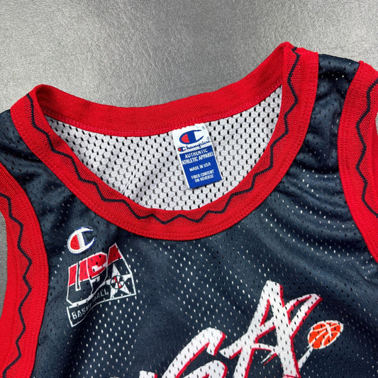 100% Authentic Hakeem Olajuwon Vintage Champion 1996 USA Olympics Jersey 44 M L