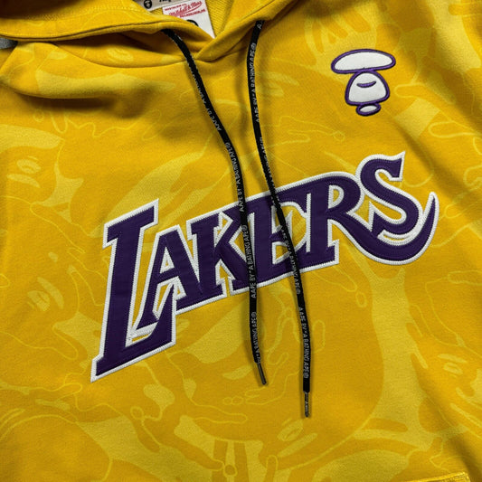 100% Authentic Aape x Mitchell & Ness Los Angeles Lakers Hoodie L 44 Mens Bape
