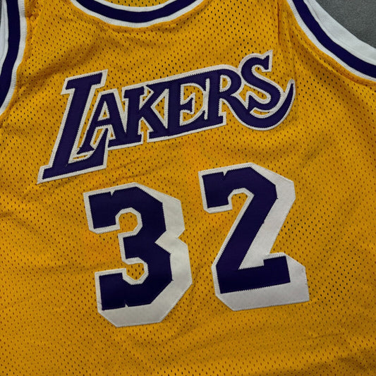 100% Authentic Magic Johnson Sand Knit Lakers Jersey Size 46 L XL Mens pro cut