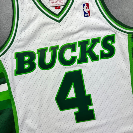 100% Authentic Sidney Moncrief Mitchell Ness 88 89 Bucks Jersey Size 44 L Mens