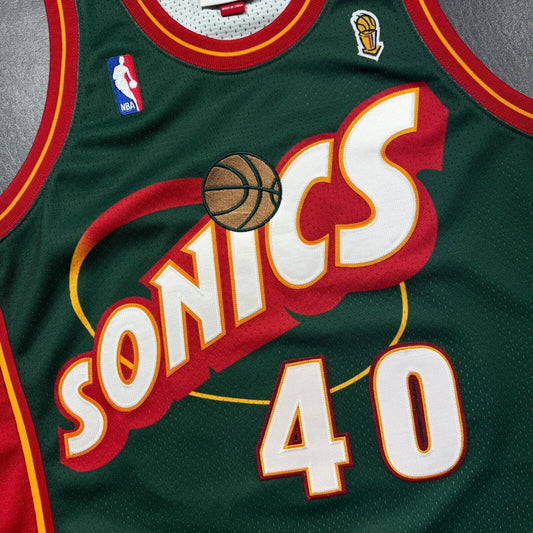 100% Authentic Shawn Kemp Mitchell Ness 96 NBA Finals Seattle Sonics Jersey 44 L