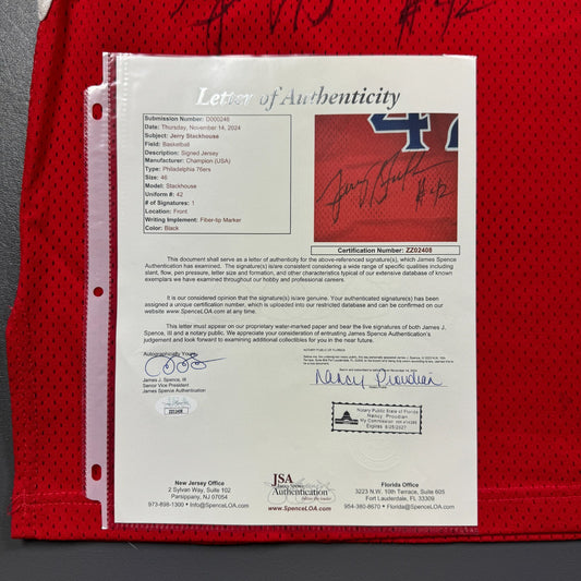 100% Authentic Jerry Stackhouse Champion 96 97 Signed 76ers Pro Cut Game Jersey