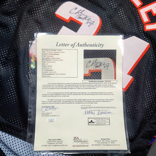 100% Authentic Charles Barkley Signed Vintage Champion Suns Jersey Size 48 JSA