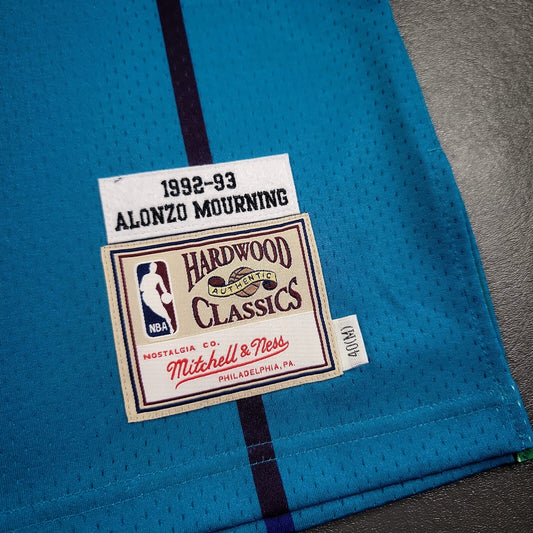 100% Authentic Alonzo Mourning Mitchell Ness 92 93 Hornets Jersey Size 40 M Mens