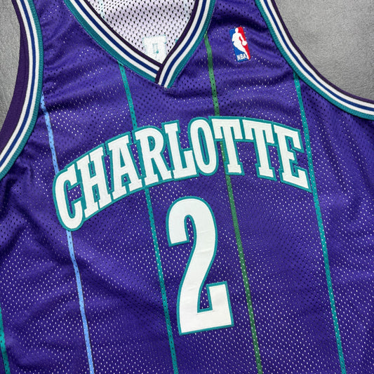 100% Authentic Larry Johnson Vintage Champion Hornets Jersey Size 48 L XL Mens