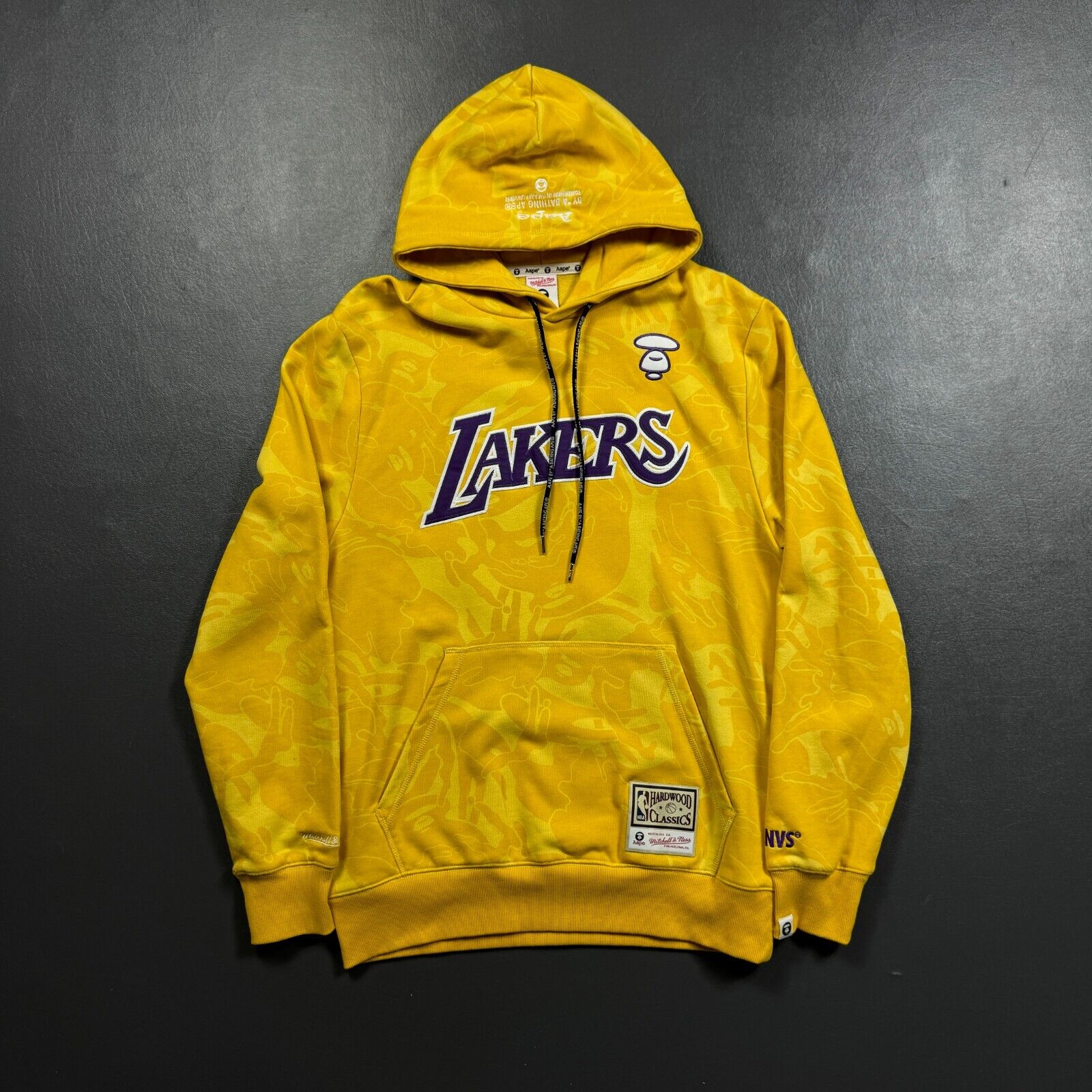 100% Authentic Aape x Mitchell & Ness Los Angeles Lakers Hoodie L 44 Mens Bape