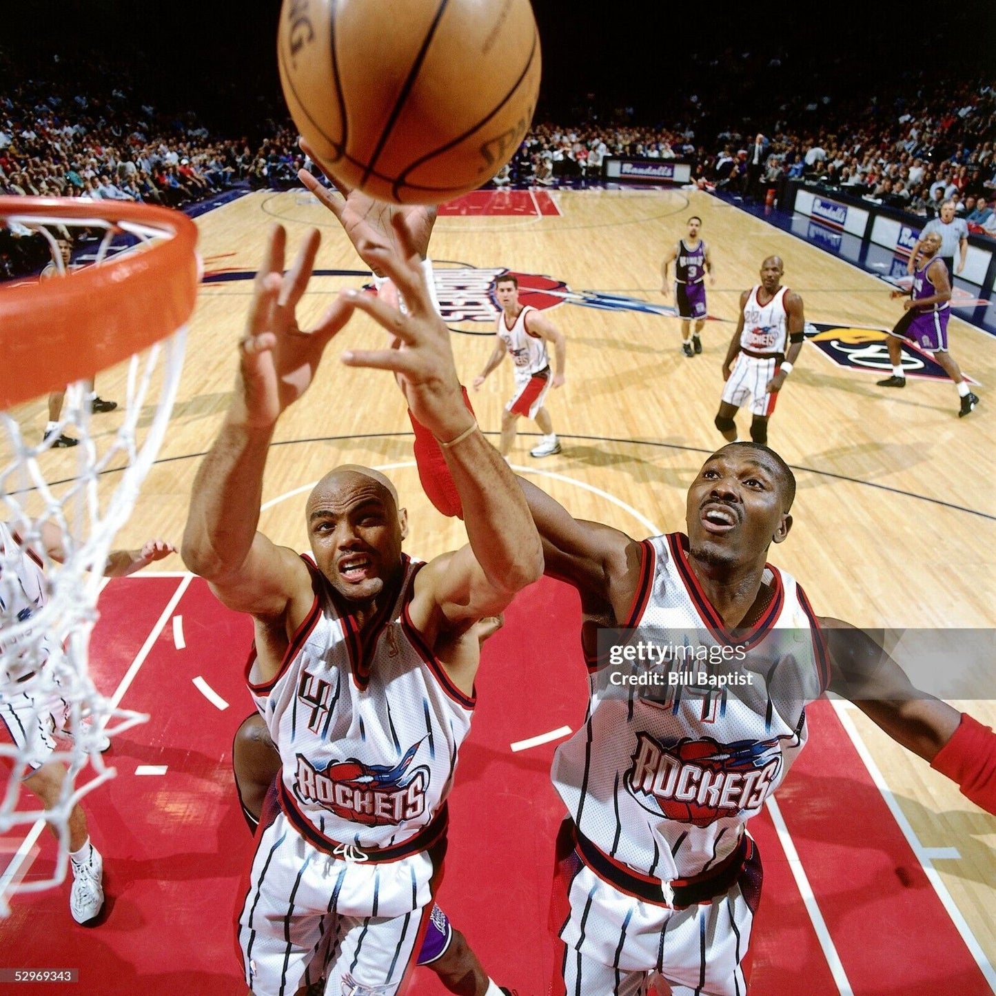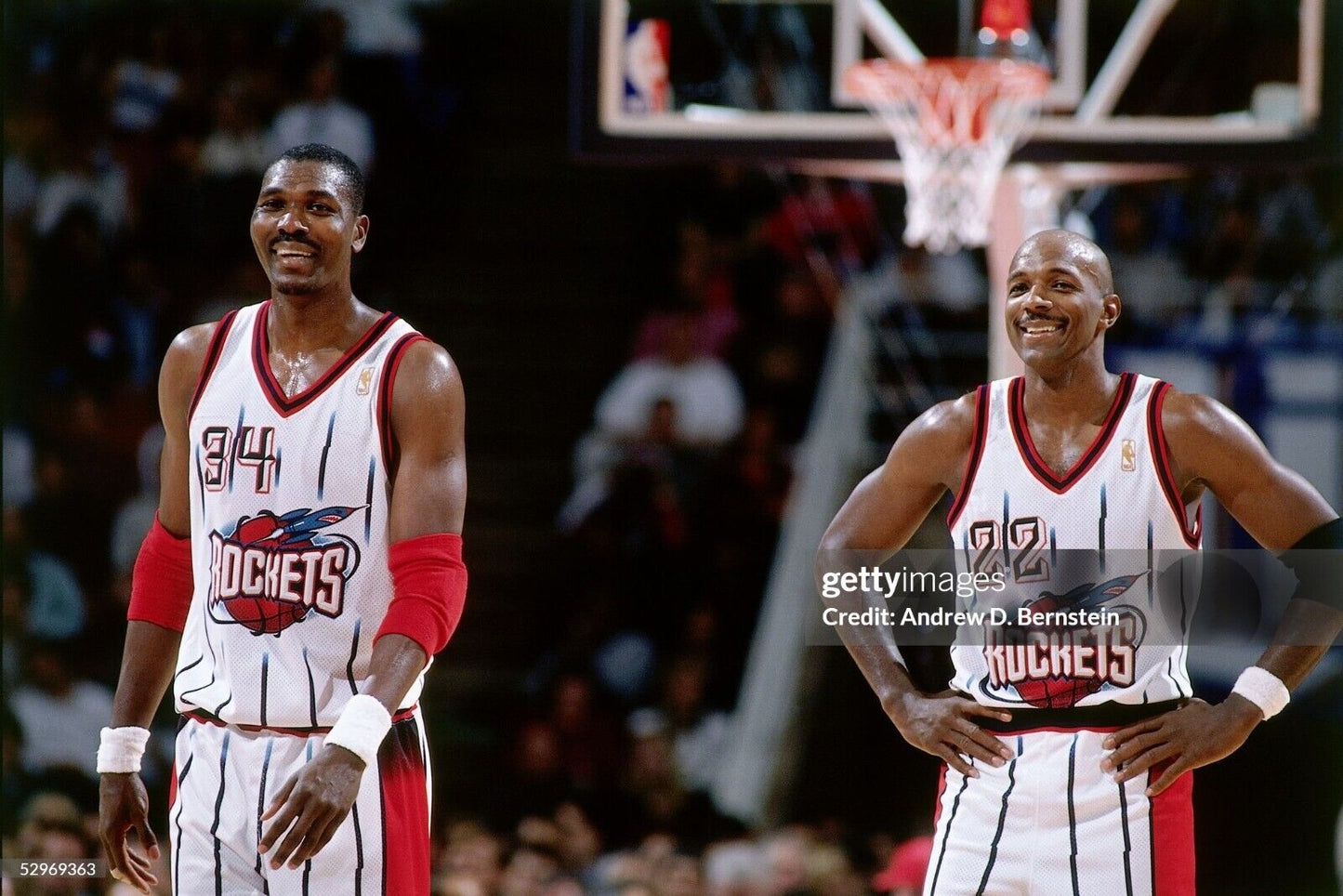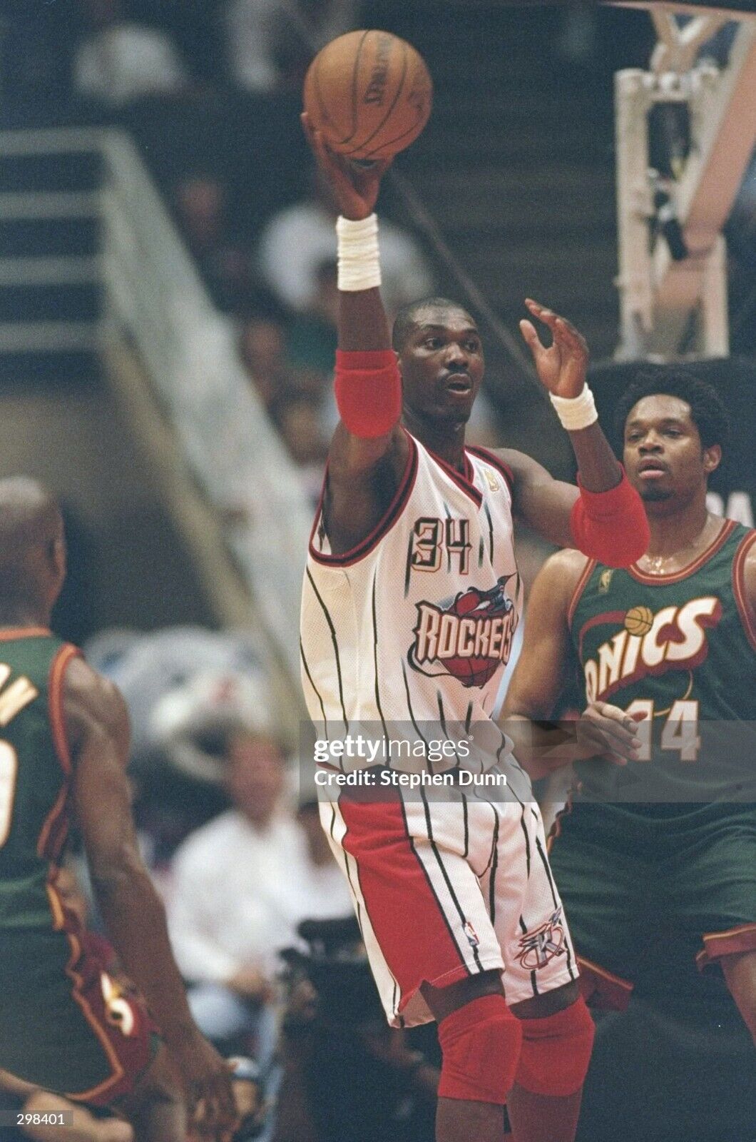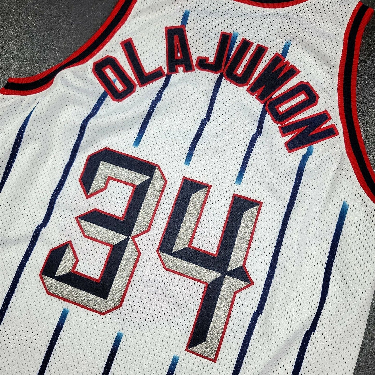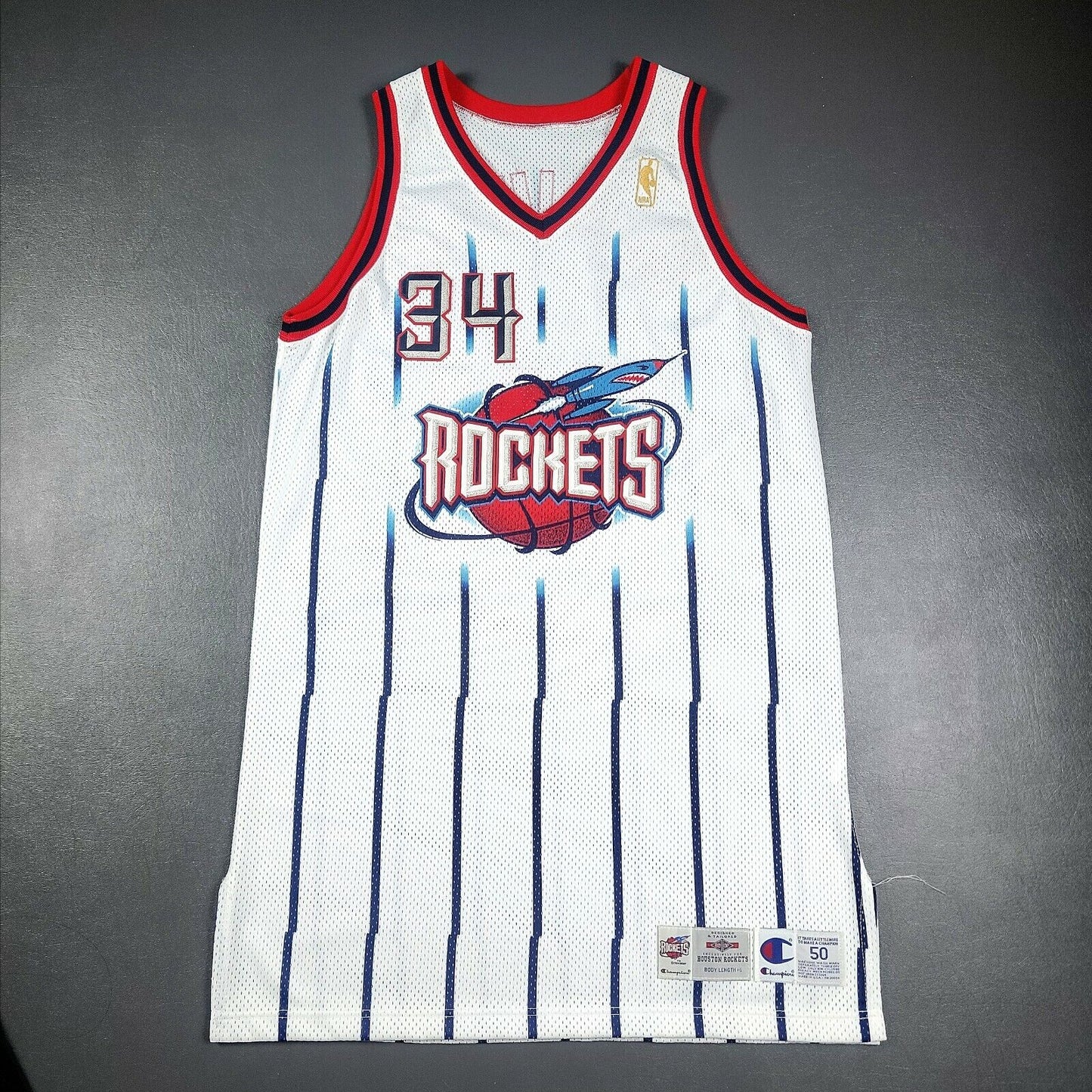 - Hakeem Olajuwon Vintage Champion 96 97 Houston Rockets Pro Cut Game Jersey