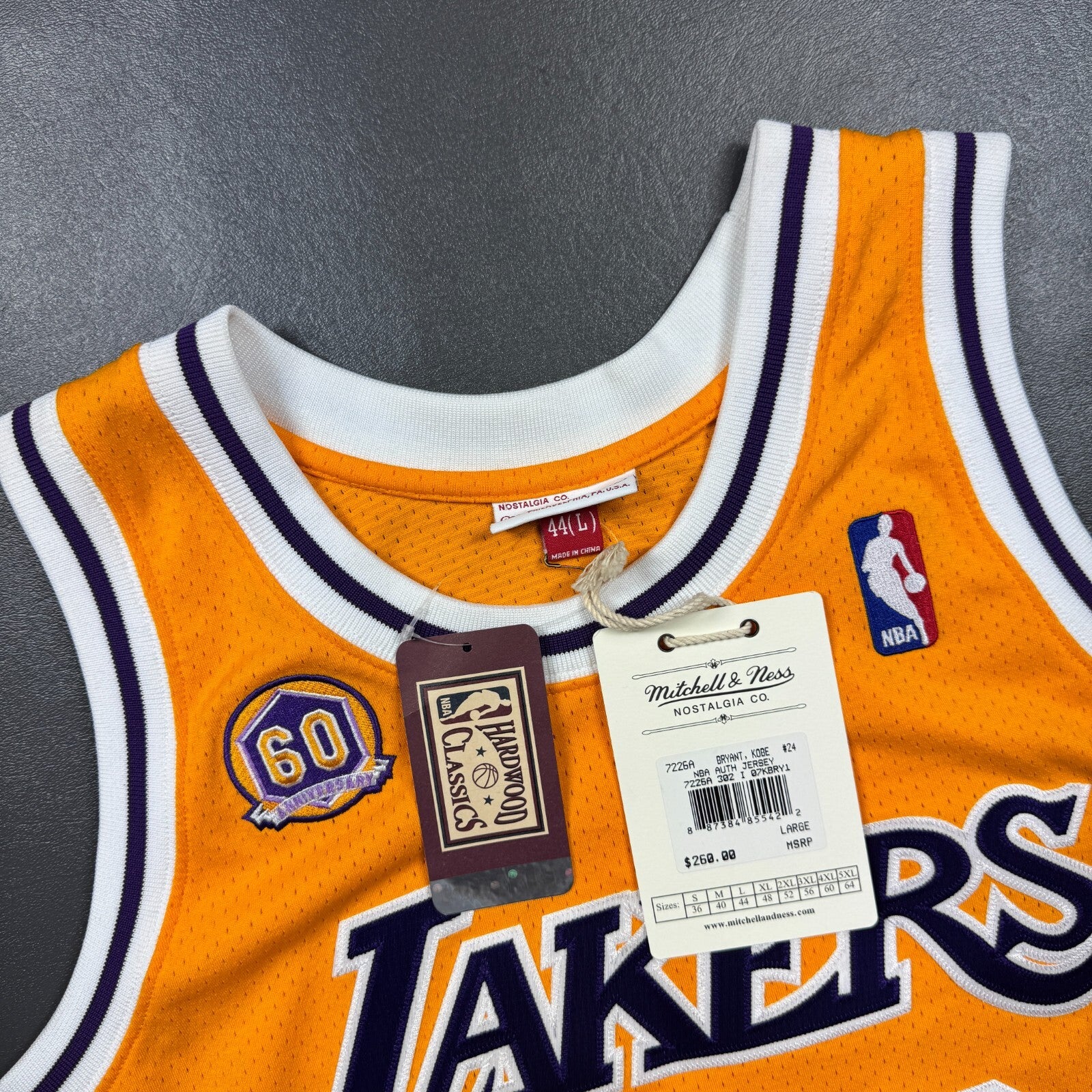 100% Authentic Kobe Bryant Mitchell Ness 07 08 Lakers 60th Jersey Size 44 L Mens