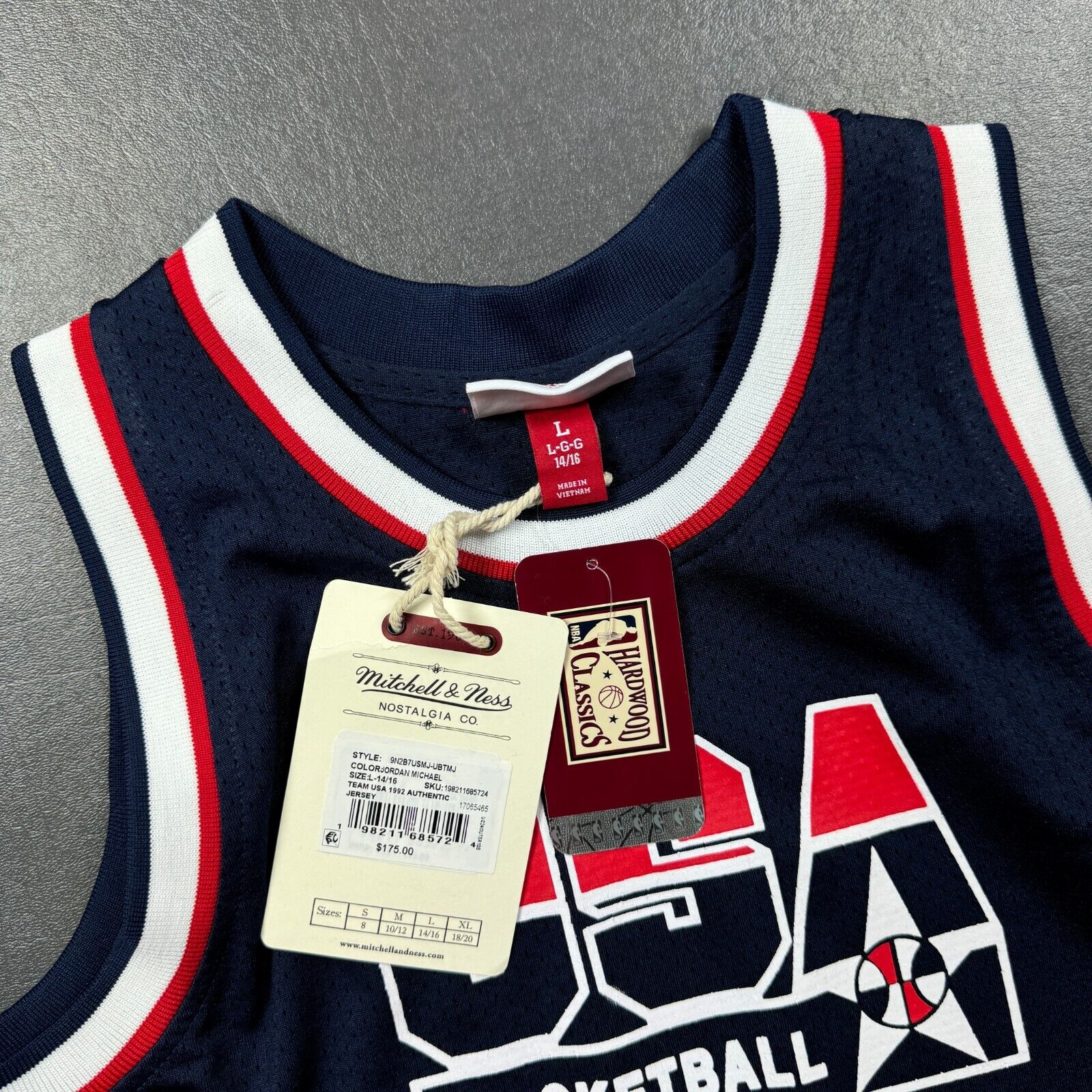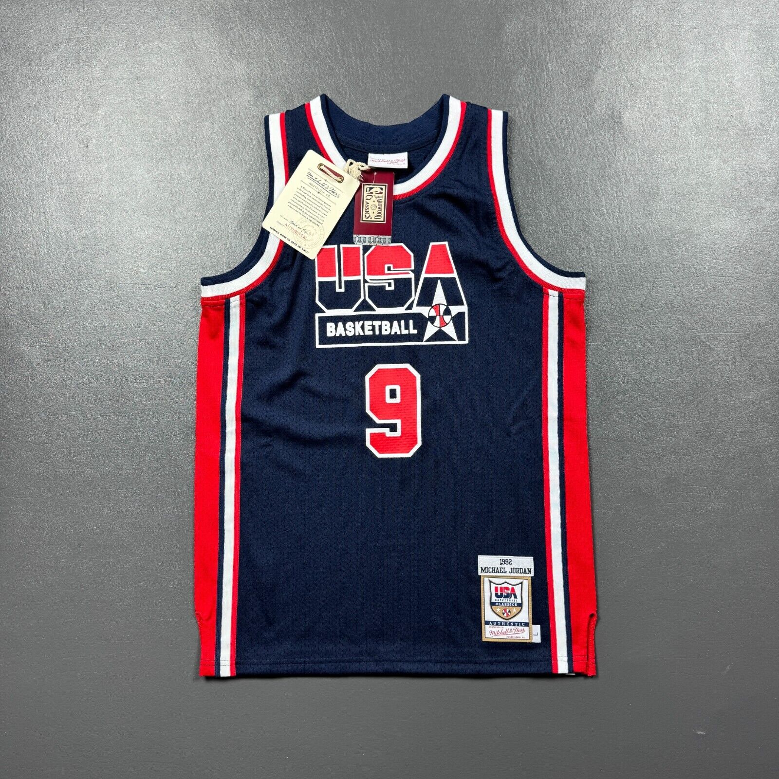 100% Authentic Michael Jordan Mitchell Ness 92 USA Olympic Jersey Youth L 14/16