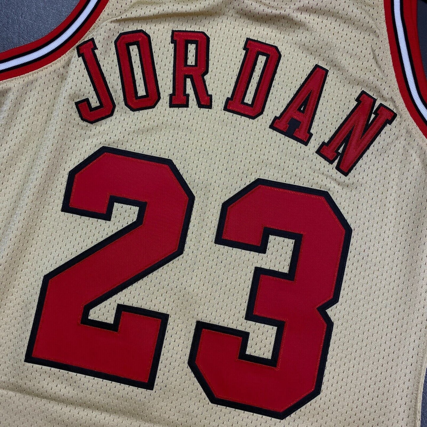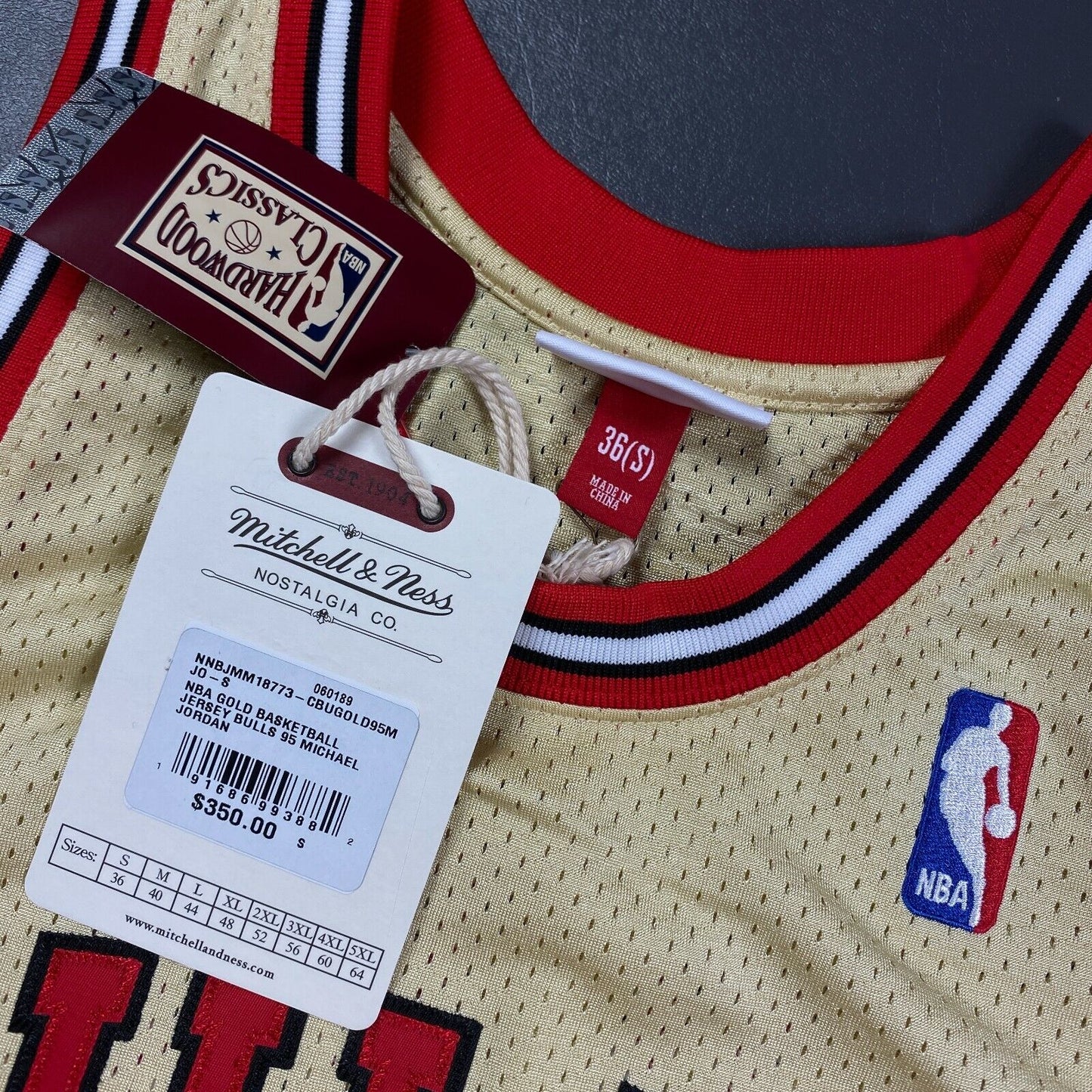 100% Authentic Michael Jordan Mitchell & Ness 95 96 Gold Bulls Jersey Size S 36