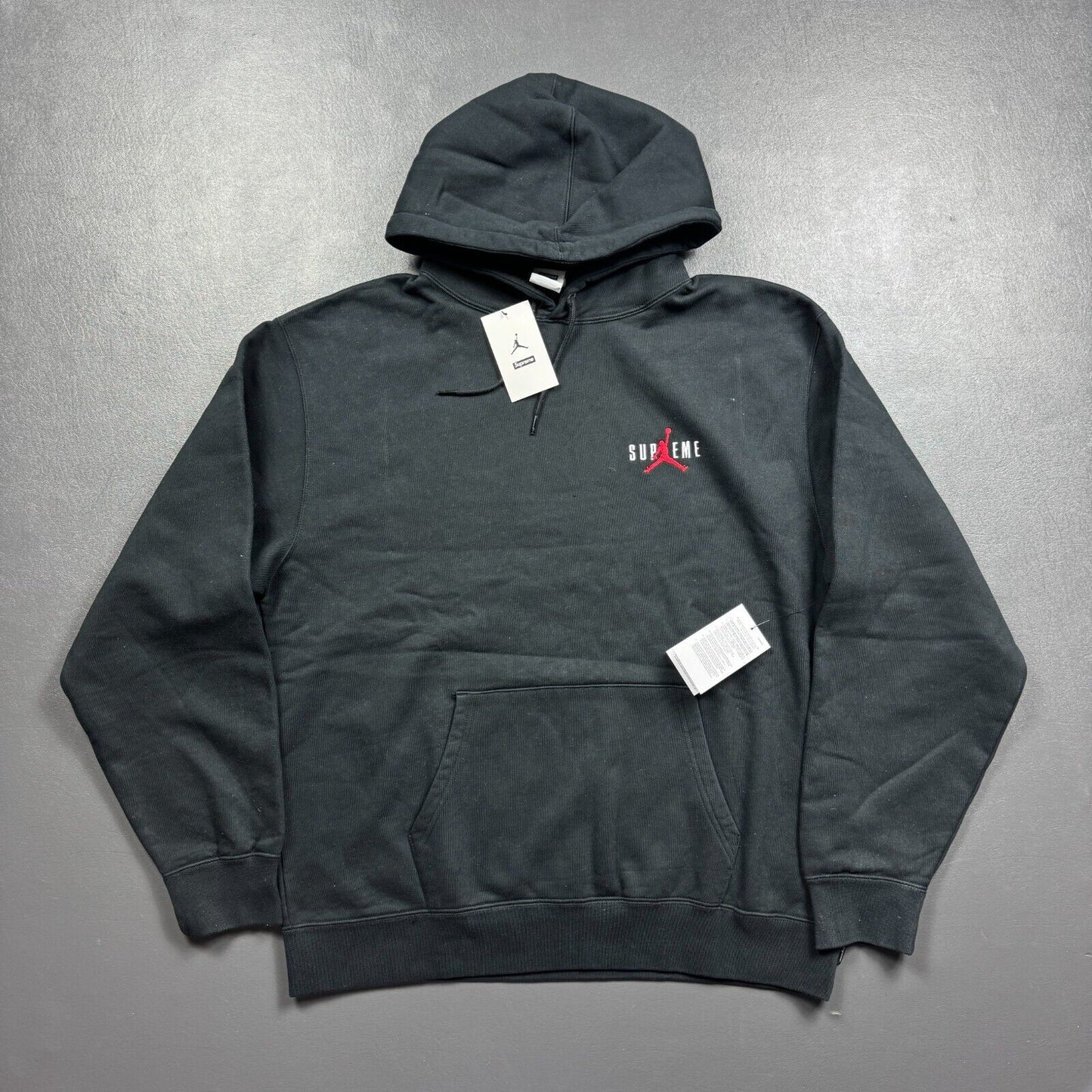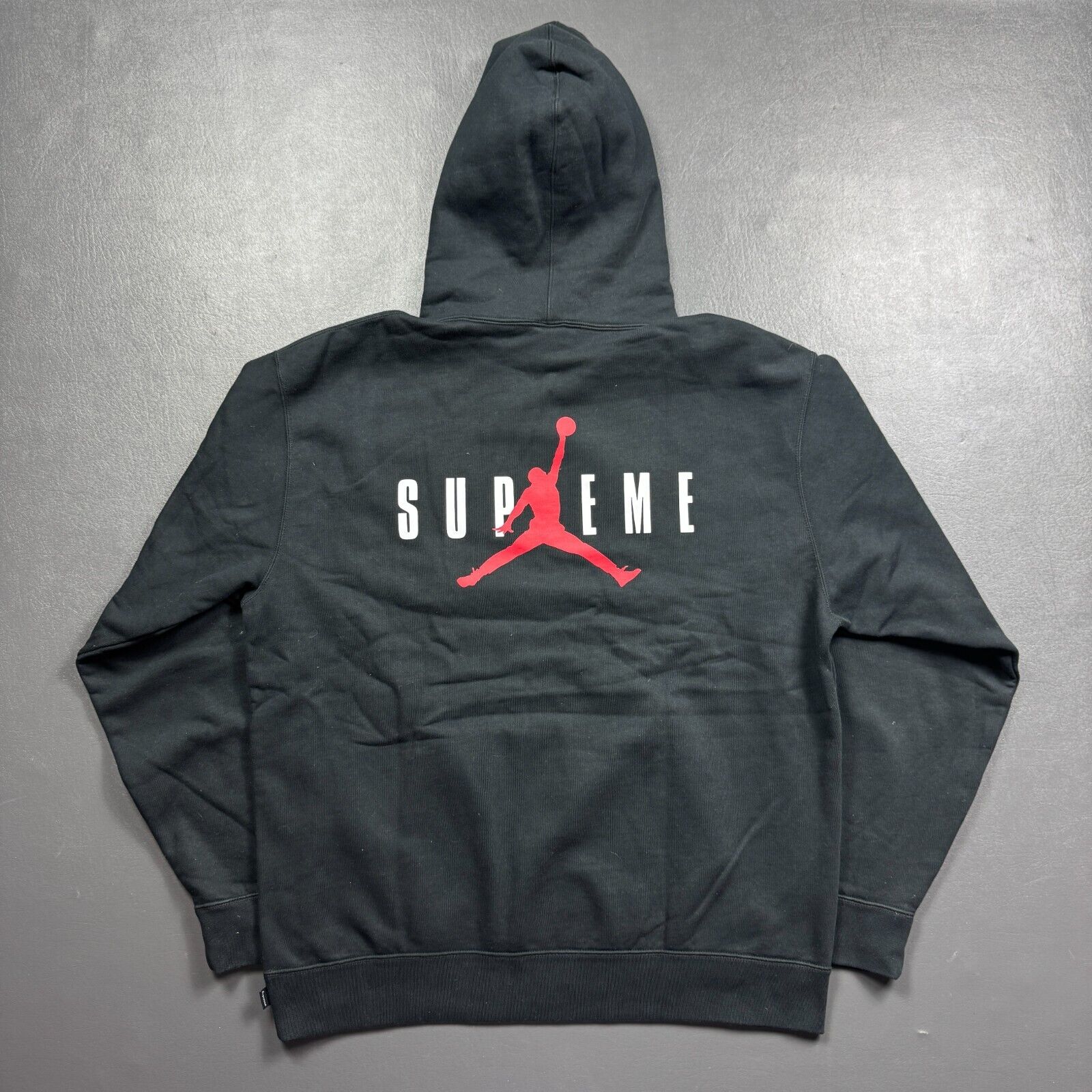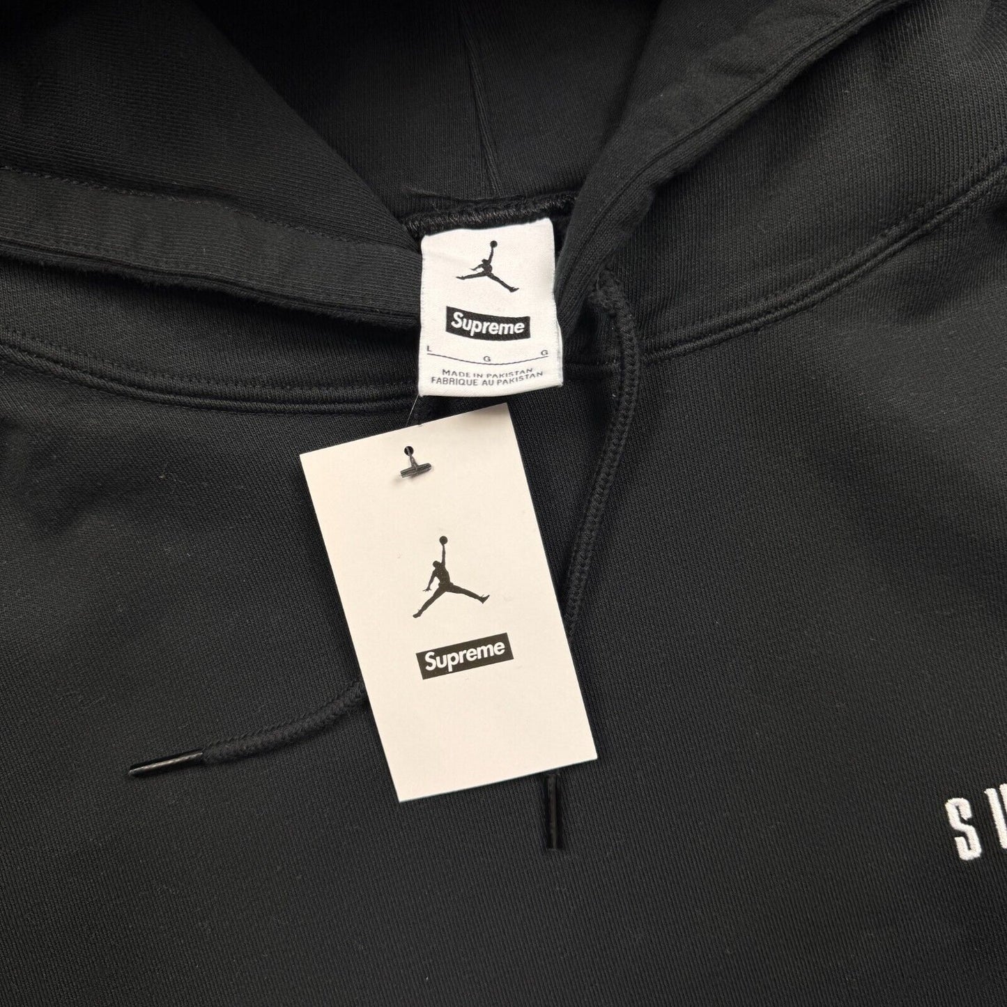 100% Authentic Supreme x Jordan Pullover Hoodie Black Size L Mens
