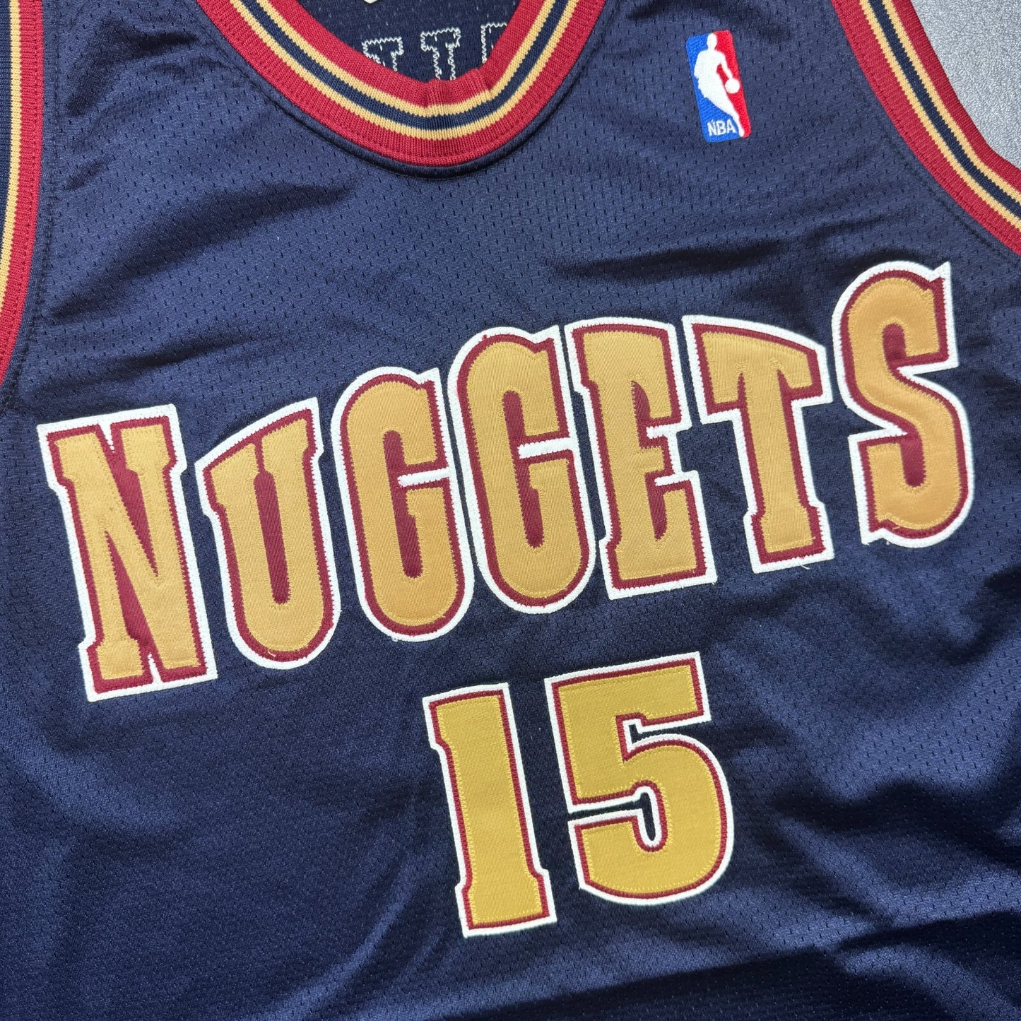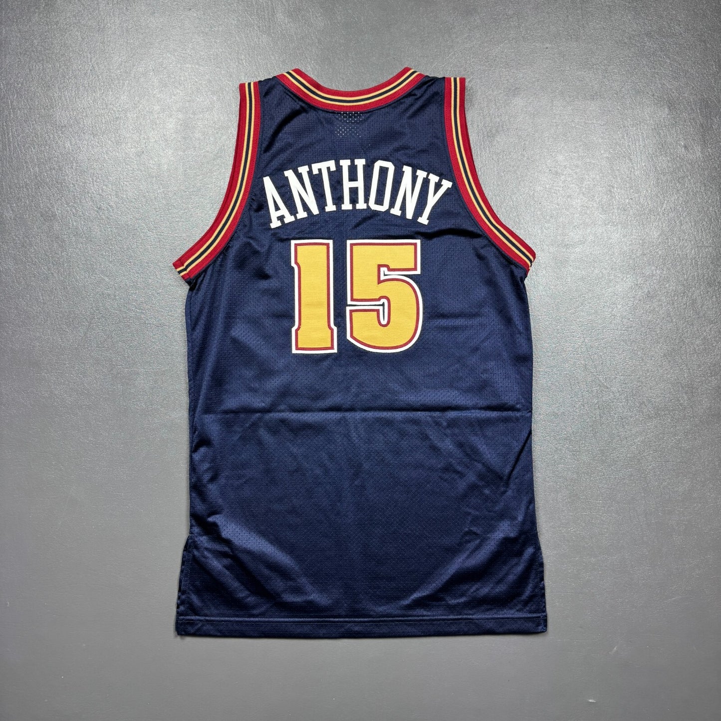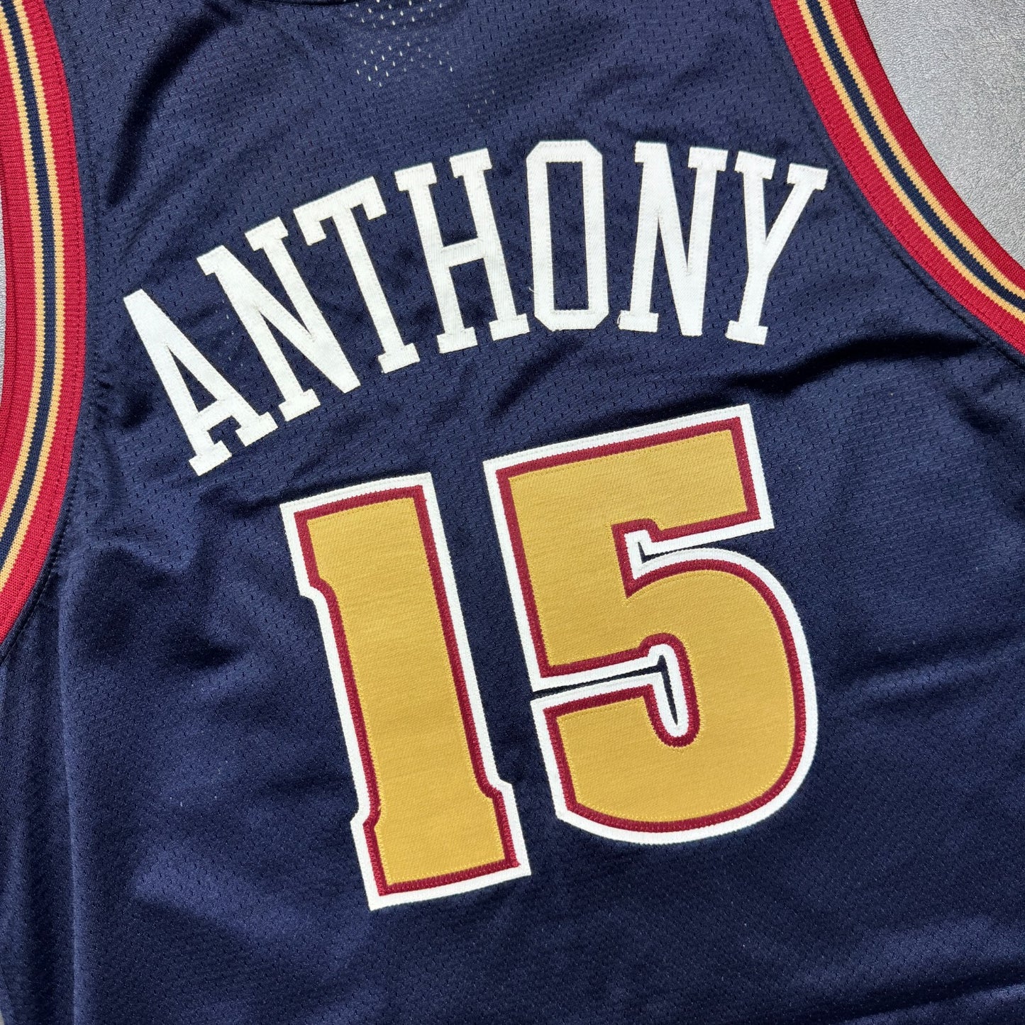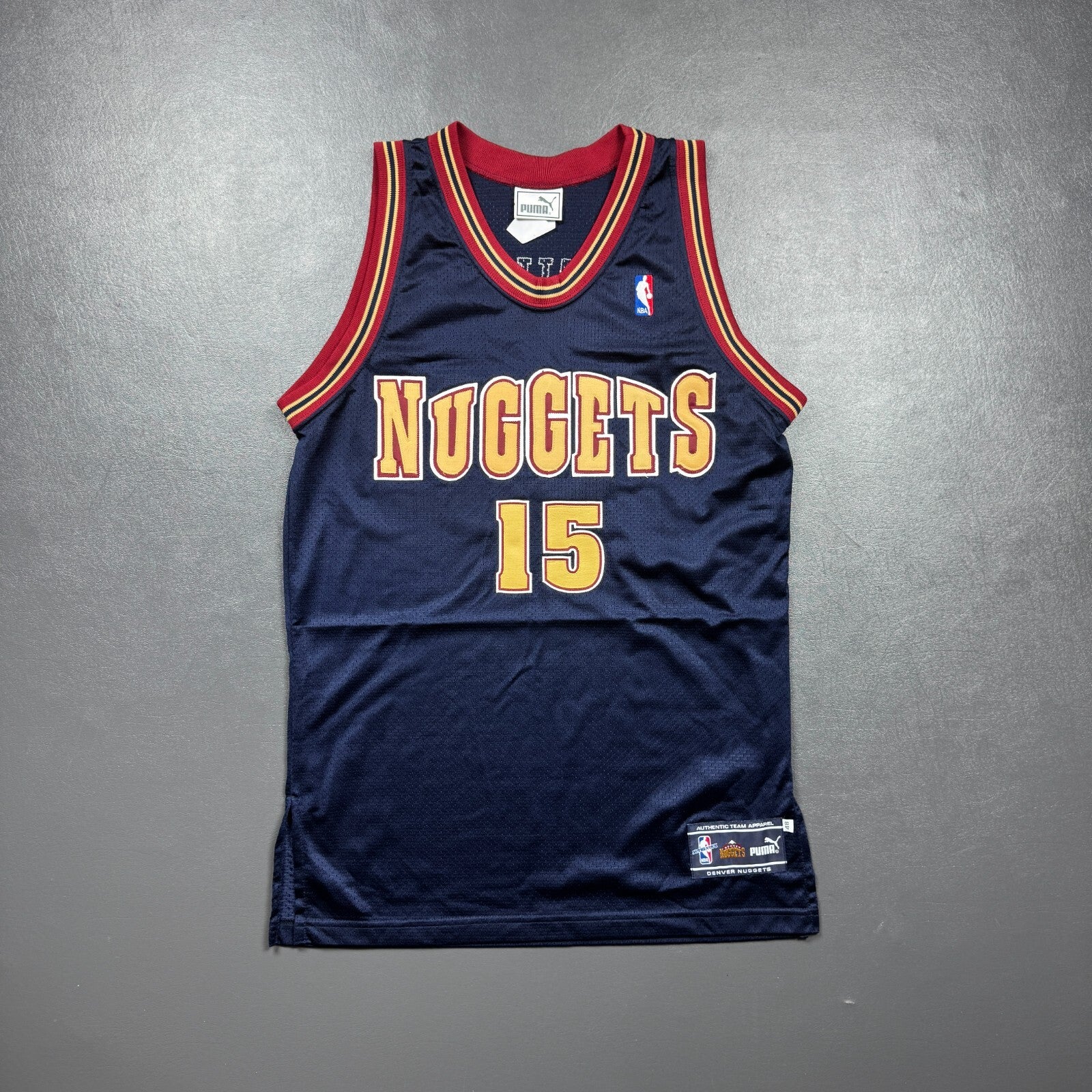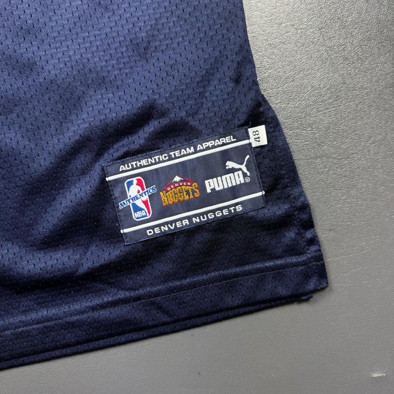 - "ANTHONY" and "15" is professionally customized onto an original vintage Puma Denver Nuggets authentic jersey