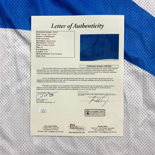 100% Authentic Terrell Brandon Signed Vintage Champion Cavs Pro Cut Game Jersey